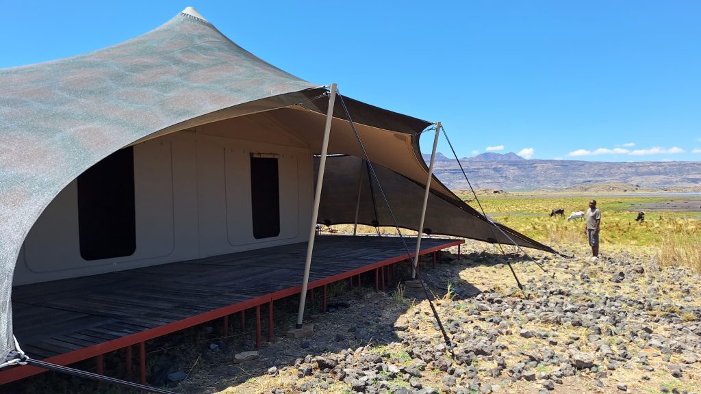 The plains surrounding Lake Natron are famous for their dramatic landscapes, but also for their fierce winds. Each tent is engineered for resilience: its aerodynamic, low-profile design reduces wind drag, and its reinforced structure provides exceptional stability even in gusty conditions. Ideal for sites exposed to nature’s extremes, the Armadillo ensures guests can immerse themselves in the wild without sacrificing comfort or safety. These tents offer:
